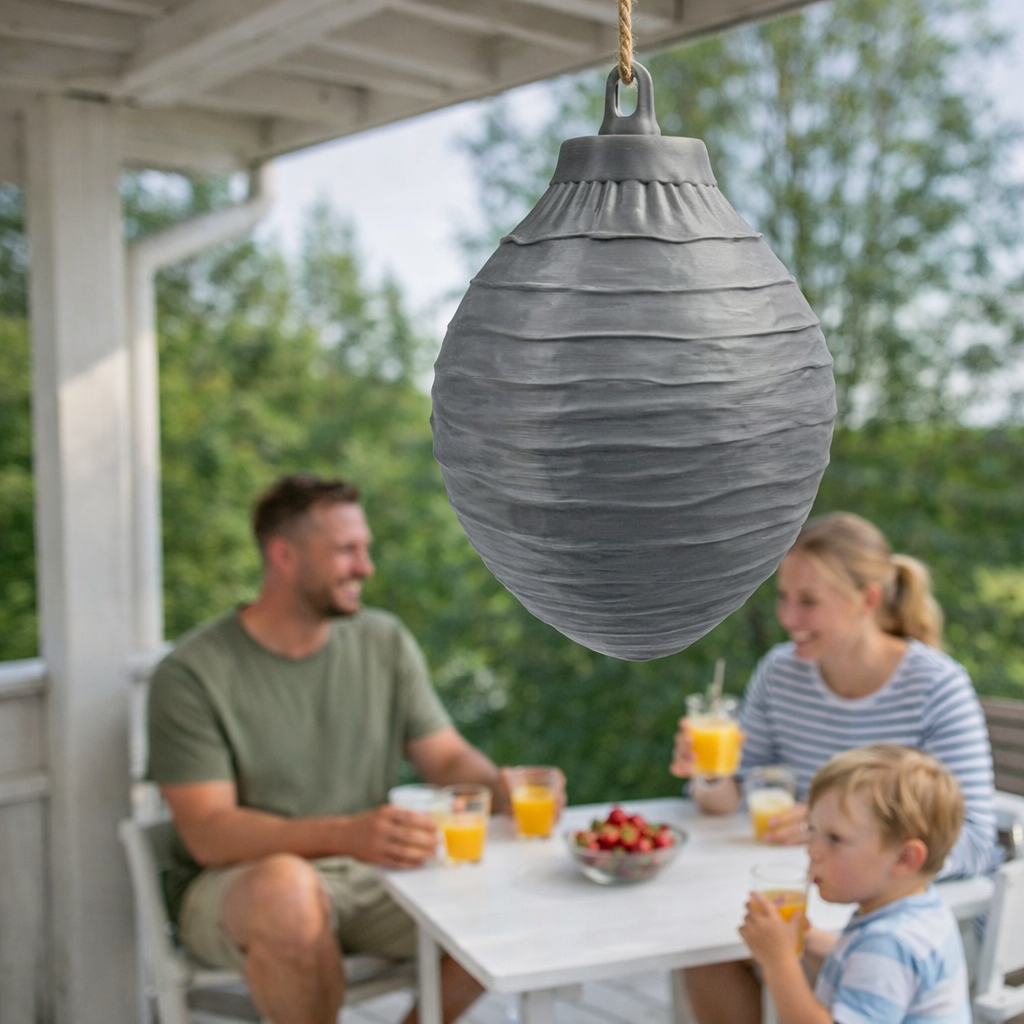 Pidä kesän oleskelualueet miellyttävinä ilman ampiaisia. Valeampiaispesä on yksinkertainen mutta tehokas ratkaisu, joka auttaa pitämään ampiaiset loitolla terassilta, parvekkeelta, kuistilta ja ulko-oven läheisyydestä.