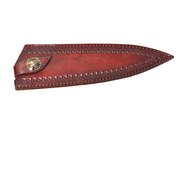 Tuppi on valmistettu korkealaatuisesta aidosta nahasta, joka kestää aikaa ja käyttöä. Tukeva rakenne suojaa veitsen terää kolhuilta ja naarmuilta, samalla kun pehmeä sisäpinta estää terän tylsymisen. Jokainen yksityiskohta on viimeistelty huolella, jotta tuppi on sekä toimiva että näyttävä osa keittiövarustustasi.