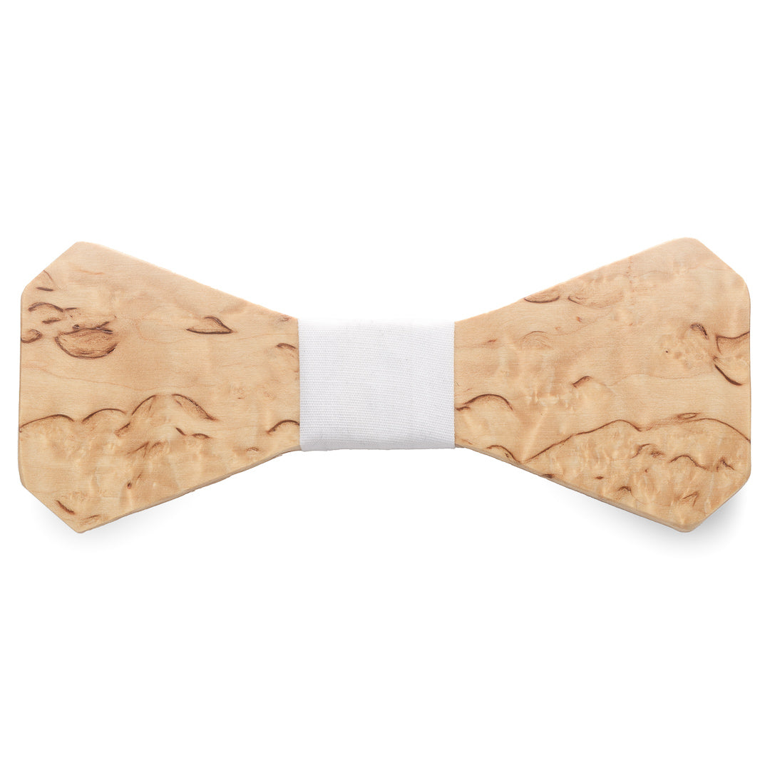 Rusetti on valmistettu suomalaisesta visakoivusta – harvinaisesta ja arvostetusta puulajista, joka tunnetaan elävästä syykuviostaan ja vaaleasta, hohtavasta pinnastaan. Jokainen rusetti on yksilöllinen – kuten kantajansa.