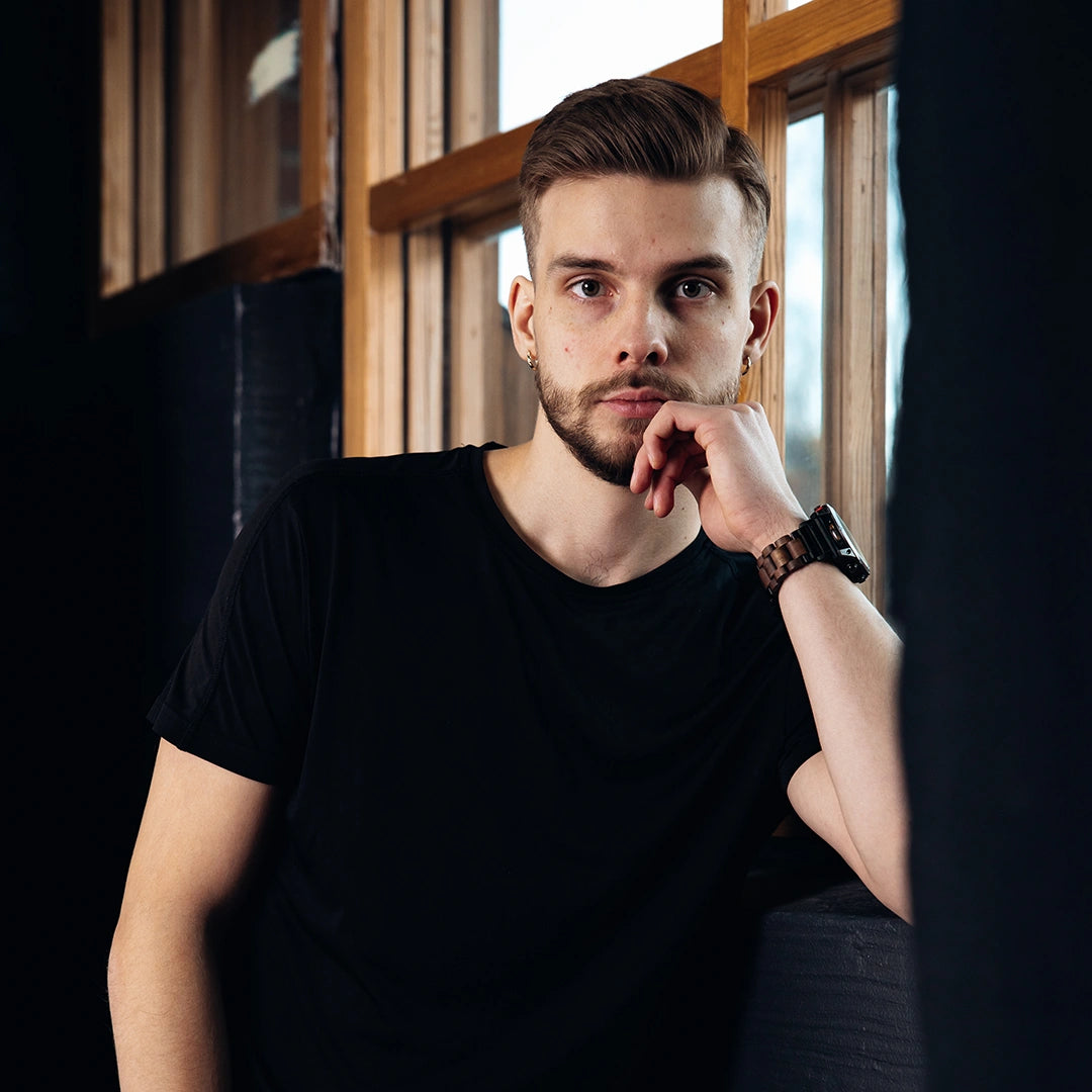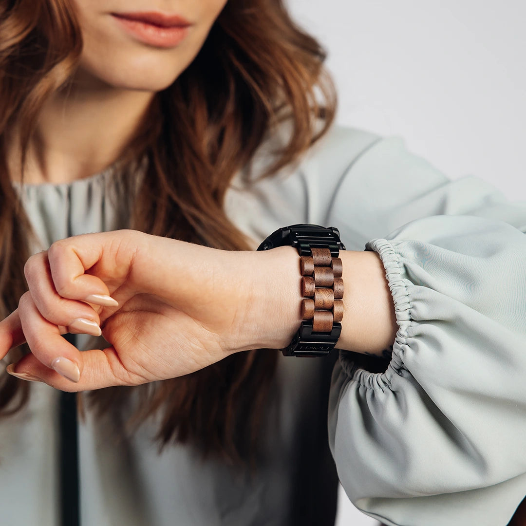 ✔️ Pähkinäpuusta ja ruostumattomasta teräksestä valmistetun rannekkeen