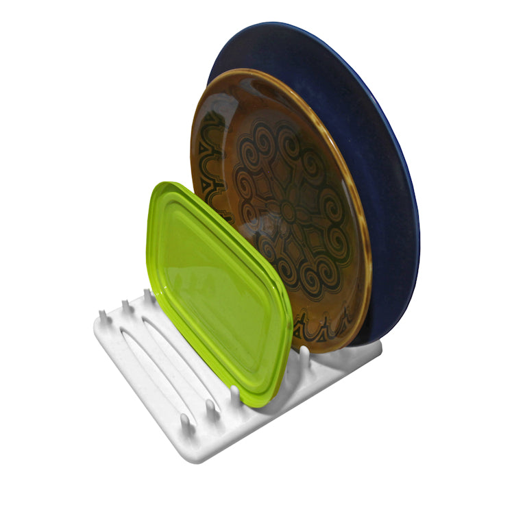 3D-tulostettu säilytysteline lautasille helpottaa keittiön järjestystä. Telineeseen mahtuu jopa 8 lautasta pystyasentoon, jolloin reunat eivät naarmuunnu ja lautaset on helppo ottaa käyttöön yksi kerrallaan. Pystysäilytys vie vähemmän tilaa kuin päällekkäin pinottu pino ja parantaa samalla ilmanvaihtoa kuivuville astioille. Ihanteellinen lautas- ja kansiteline niin tiskipöydälle kuin kaappiin.