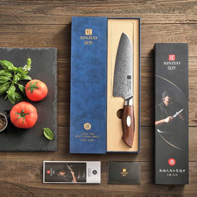 XINZUO Jiang Series Damascus Santoku Knife - Elegant Pattern and Top-Class Performance