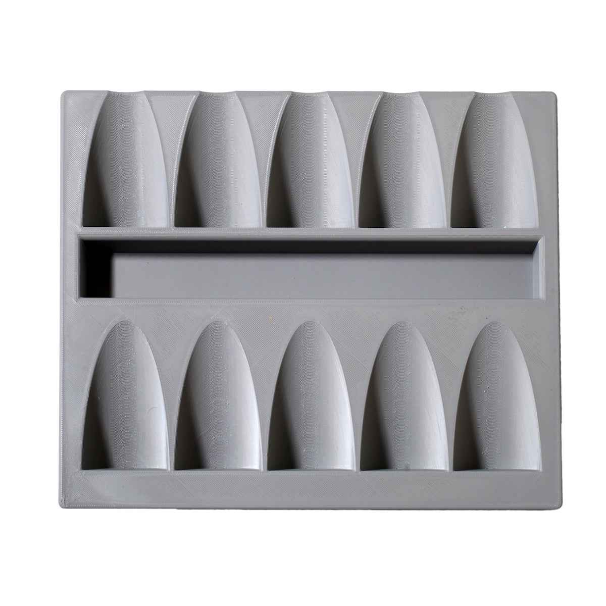 Ominaisuudet: • Tilaa 10 maustepurkille • Suunniteltu vetolaatikkoon sopivaksi • Helppo puhdistaa • Sopii standardikokoisille maustepurkeille • Valmistamme tuotteemme Suomessa kahdesta ympäristöystävällisestä materiaalista: • PLA: Biohajoava, valmistettu maissitärkkelyksestä • PETG: Kierrätettävä ympäristöystävällinen materiaali.