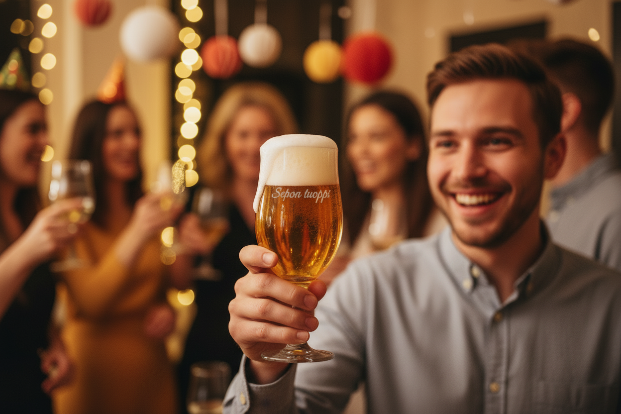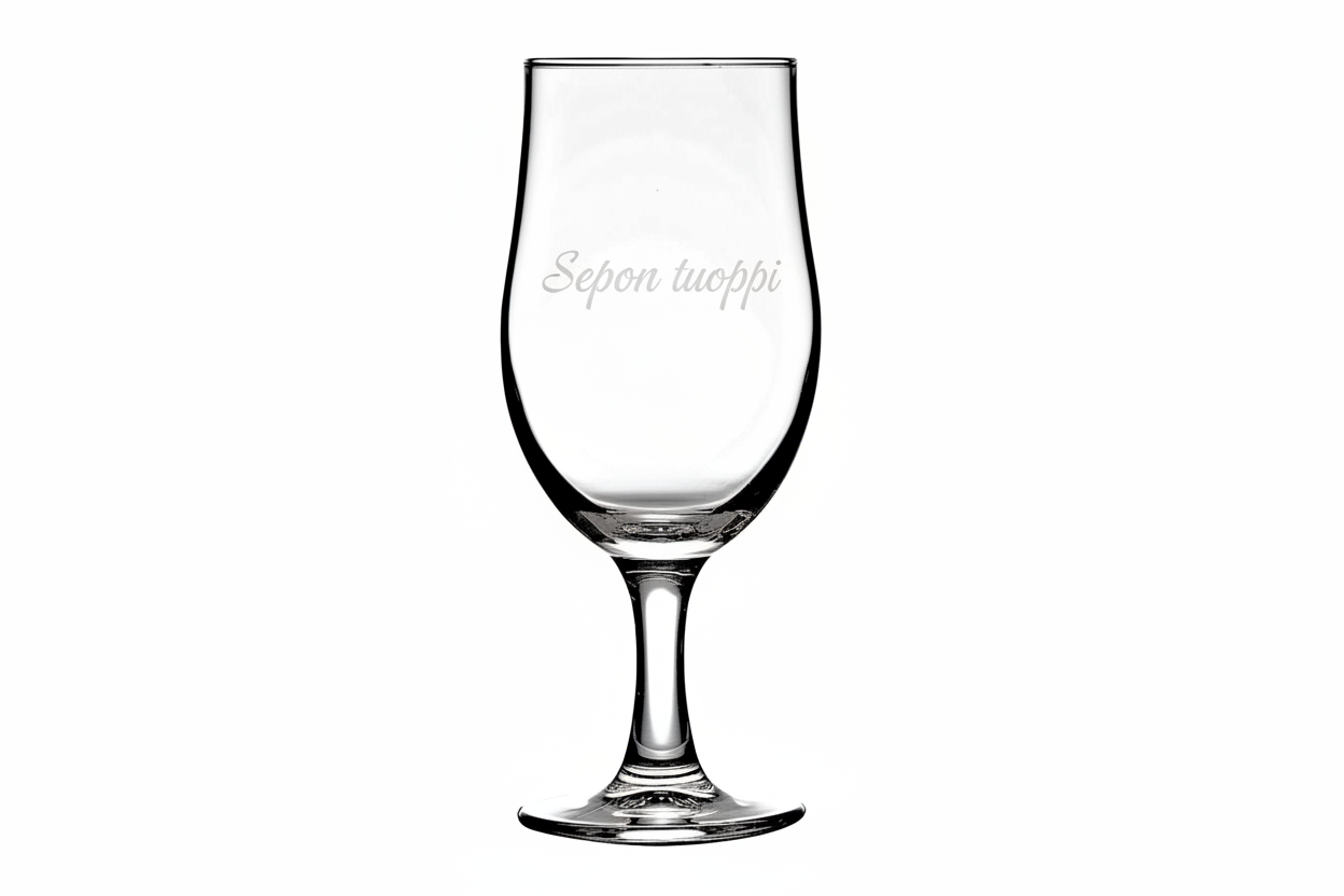The glass can be personalized with the customer's own text or pattern , which is engraved into the glass with a laser . The laser engraving is permanent and stylish - it does not wear off with use or washing. A personalized beer glass is perfect as a gift or for business use.